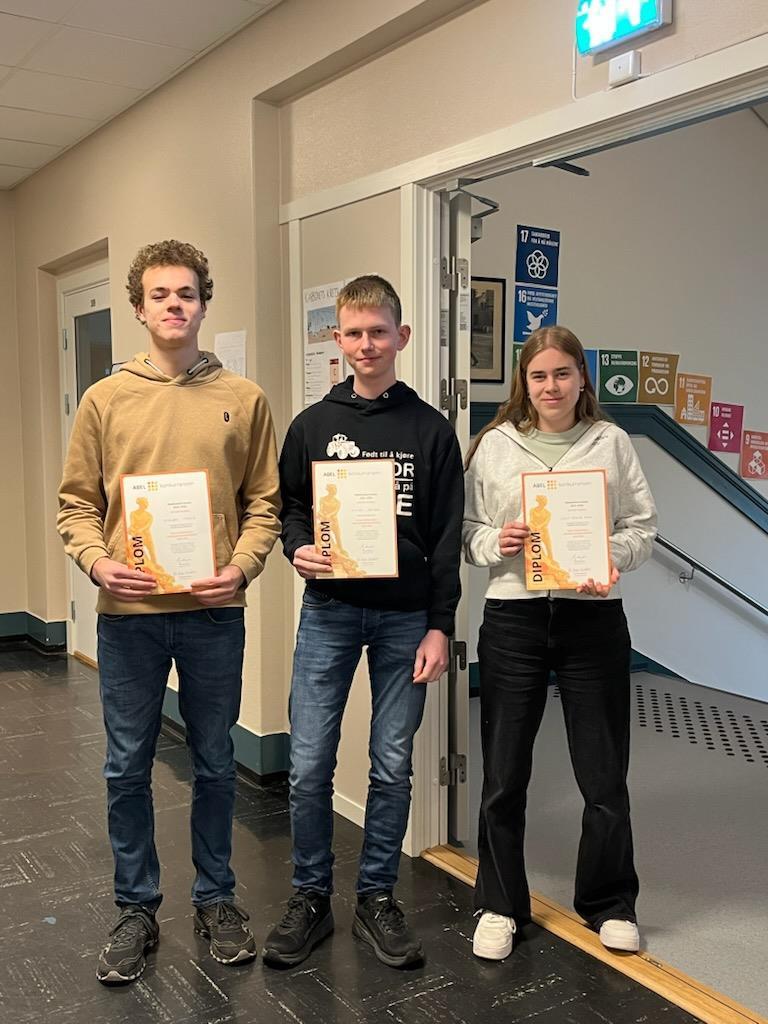 Abelkonkurransen i matematikkTotalt 3132 elever deltok på 1.runde av Abelkonkurransen i matematikk 2025/26. Vi gratulerer Lilly Emilie Dale, Asbjørn Tveitå og Eivind Meland med gode resultater !De to førstnevnte kvalifiserte seg til runde 2.