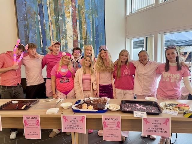 Rosa sløyfe aksjonen 2025Rosa sløyfe dag Onsdag 29. oktober arrangerte avgangsklassene rosa sløyfedag til inntekt for brystkreftaksjonen.Det var kakesalg i lunsjen, og alle ble oppfordret til å kle seg i rosa for anledningen.Best kledde fikk premie.